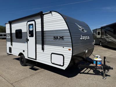 The Jayco Jay Flight SLX travel trailer is quite easy to own because it is lightweight for an easier towing experience. Built on a fully integrated A-frame with galvanized-steel, impact-resistant wheel wells, the Jay Flight SLX has quality at its very foundation. That quality continues on to the electric self-adjusting brakes, easy-lube hubs, Magnum Truss roof system, and LP quick connect. Some of what the mandatory Customer Value Package includes is backup camera prep, Keyed-Alike entry and baggage doors, and an on-demand tankless water heater