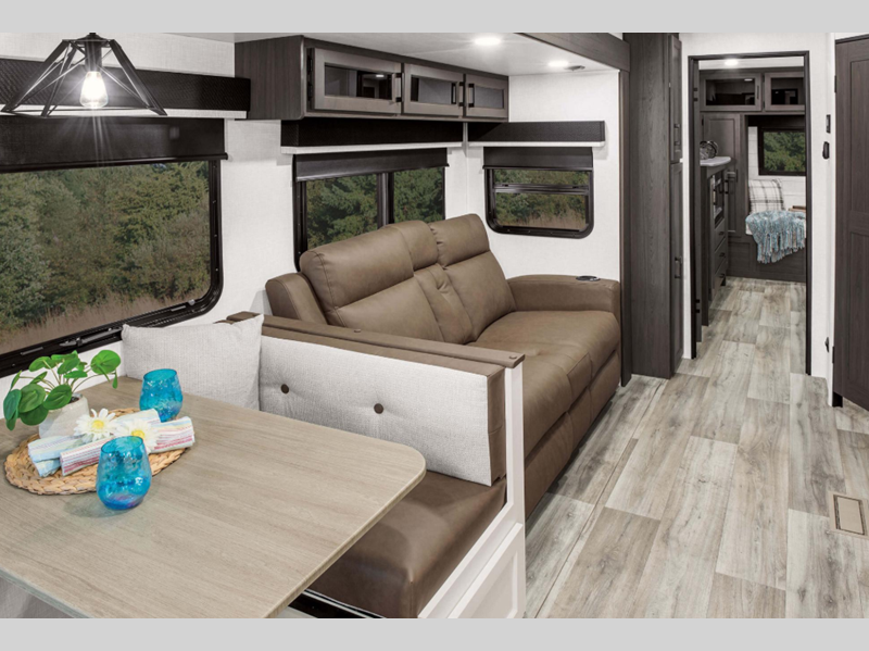 Sleeps 5 Slides 2 Length 31 ft 6 in Ext Width 8 ft Ext Height 11 ft 4 in Int Height 6 ft 10 in Interior Color Blake, Doe Hitch Weight 880 lbs GVWR 9265 lbs Dry Weight 7520 lbs Cargo Capacity 1745 lbs Fresh Water Capacity 45 gals Grey Water Capacity 64 gals Black Water Capacity 32 gals Tire Size 15" Furnace BTU 30000 btu Available Beds King Refrigerator Type 12V Refrigerator Size 10 cu ft Cooktop Burners 3 Shower Size 30" x 36" Number of Awnings 1 Axle Weight 6640 lbs LP Tank Capacity 30 lbs Water Heater Type On Demand Tankless AC BTU 15000 btu Cargo Deck Size 0 ft TV Info LR 40" Smart TV, BR TV Awning Info 16' Power w/ LED Lights Axle Count 2 Number of LP Tanks 2 Shower Type Standard Electrical Service 50 amp Similar Floorplans